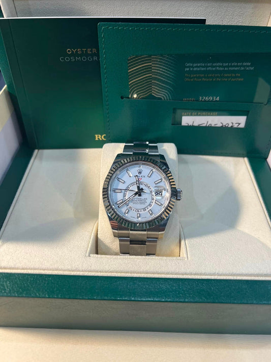 ROLEX STEEL SKY-DWELLER 32693 42MM WHIITE DIAL Box +Papers