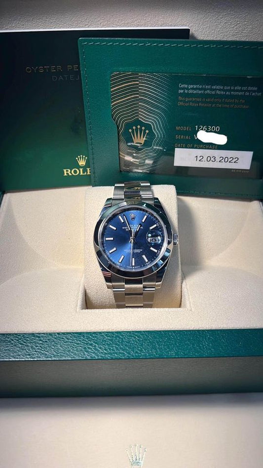 Rolex Datejust Blue Stick Dial Smooth Bezel Oyster Steel Watch 126300