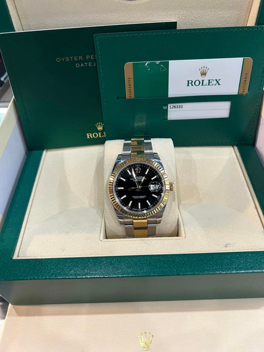 MINT 2020 PAPERS Rolex DateJust 41 Black Stick Dial 18K Gold 41mm Oyster 126333 B+P