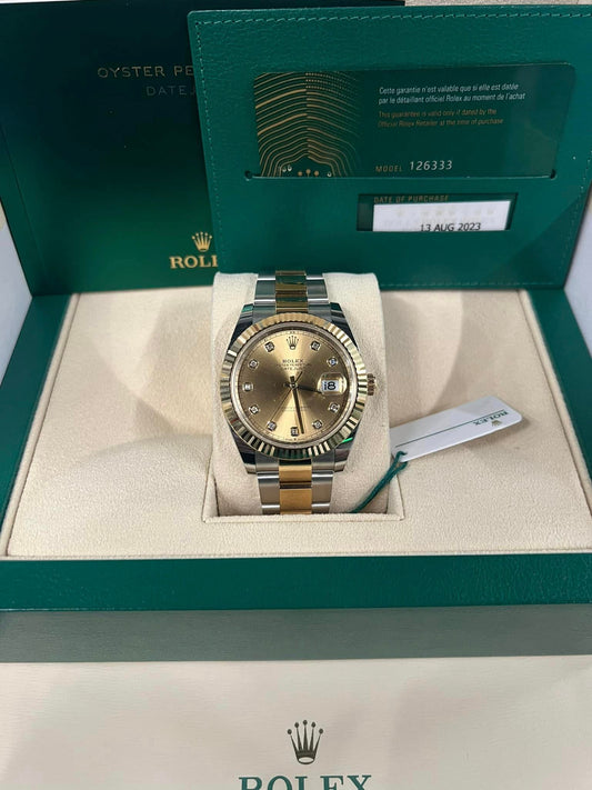2023 Rolex DateJust 41 Champagne Diamond Dial 18K yellow Gold 41mm Oyster 126333 B+P