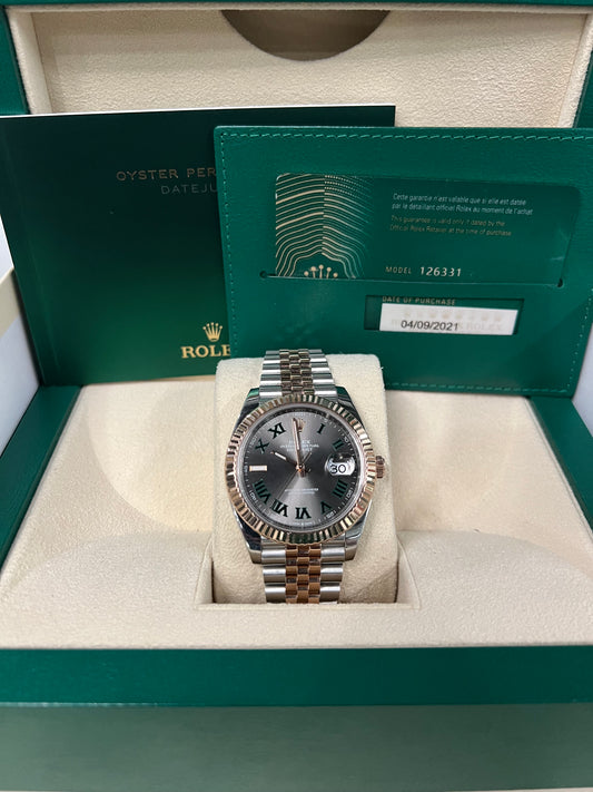 2021 Two tone rose gold Rolex DateJust 41 Wimbledon Dial 18K rose Gold 41mm Oyster 126331 B+P